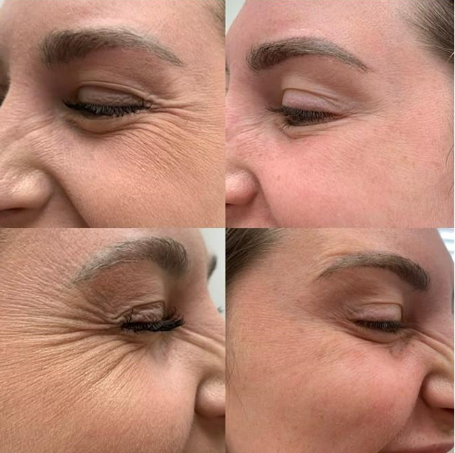 Suaviza linhas de expressão, como rugas na testa, pés de galinha e marcas entre as sobrancelhas. Também previne o envelhecimento precoce e proporciona um aspecto mais descansado e jovial.